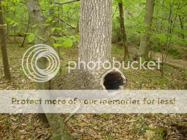 So, yesterday....after checking my drift fences (which yielded little), I meandered back over to the ratsnake tree. No snake sitting out this time. Not to be deterred, I maneuvered around to take a peek into the hole. Instantly, I saw a snake head retract from the opening and retreat deeper into the cavity.